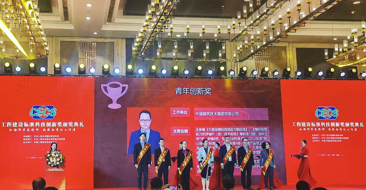11月3日,2024年度中國工程建設標準化學術大會暨工程建設標準科技創(chuàng)新獎頒獎典禮在成都舉行。中國建技預應力工程事業(yè)部總經(jīng)理蔣方新榮獲2024年度工程建設標準科技創(chuàng)新獎“青年創(chuàng)新獎”。