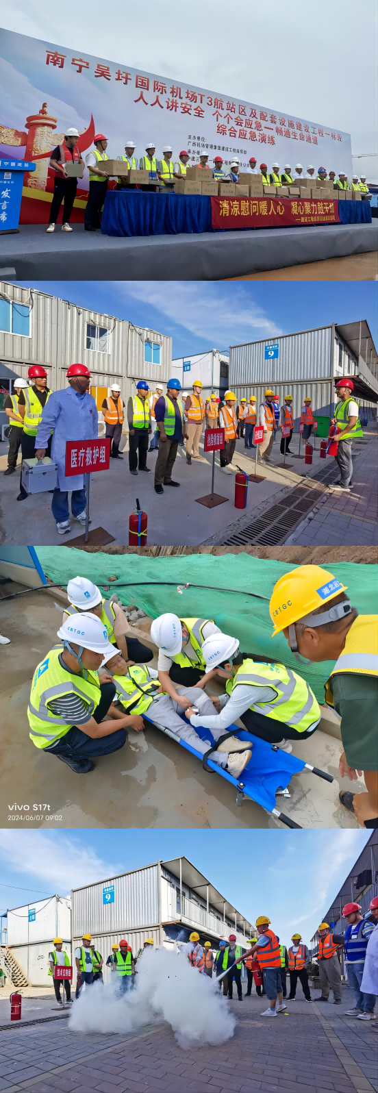 為檢驗和提高管理人員、作業人員應急能力和水平,鍛煉隊伍,完善機制,預應力工程事業部南寧吳圩國際機場T3航站樓工程、華北分公司廣東電網裝修項目、機電工程分公司無錫酒店商辦機電工程、西北分公司宜昌EPC工程總承包項目等各在施項目組織或參與消防、防汛、高處墜落等應急救援演練,進一步增強了員工應急處置能力。