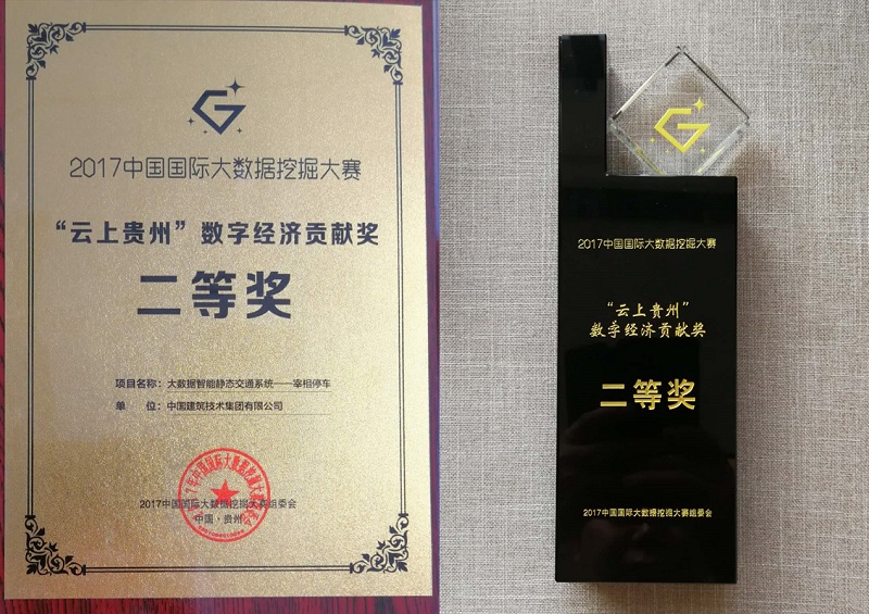 2017年12月28日,2017中國國際大數(shù)據(jù)挖掘大賽在貴州省貴陽市落幕,我公司基于大數(shù)據(jù)云平臺的智能停車項目--宰相停車項目,獲得“云上貴州-數(shù)字經(jīng)濟貢獻獎”二等獎。