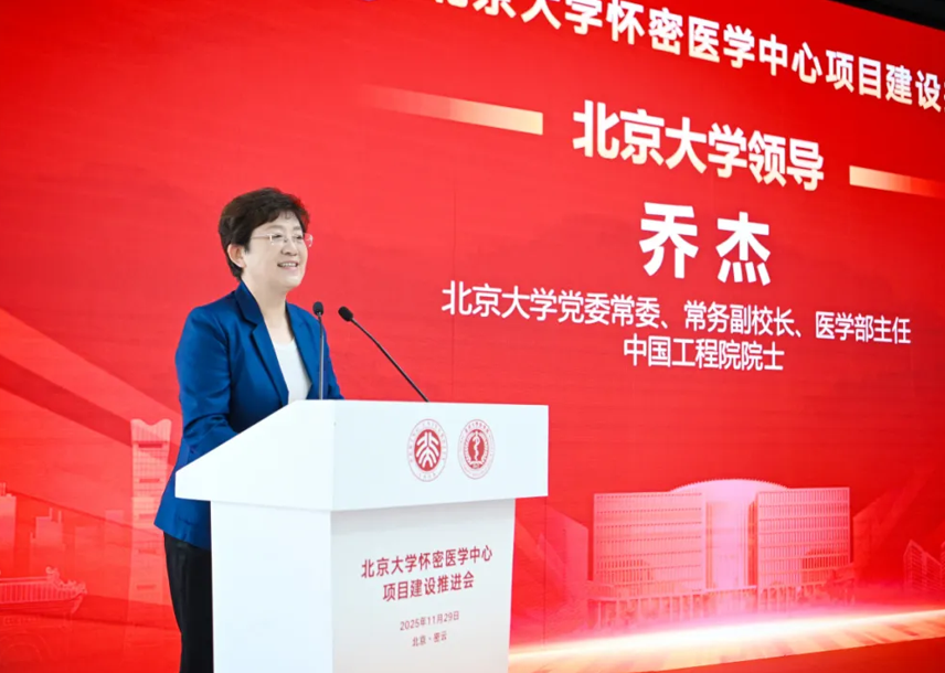 喬杰在講話中表示,站在“十四五”收官與“十五五”開局關(guān)鍵節(jié)點,北京大學(xué)懷密醫(yī)學(xué)中心作為北大醫(yī)學(xué)未來發(fā)展的重要戰(zhàn)略,承載著北大醫(yī)學(xué)城、世界醫(yī)學(xué)谷構(gòu)想。中心以創(chuàng)建世界一流醫(yī)學(xué)教育、前沿交叉研究和創(chuàng)新轉(zhuǎn)化“三個中心”為目標(biāo),助力前沿交叉研究與科研產(chǎn)業(yè)融合,積極服務(wù)首都及密云發(fā)展,為北京國際科創(chuàng)中心與國家醫(yī)藥衛(wèi)生事業(yè)注入北大醫(yī)學(xué)新動能。