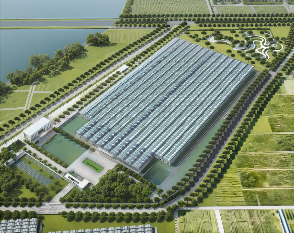 項目位于山東省濰坊市昌邑市飲馬鎮,由集團公司市場部與設計七院聯合承接。采用EPC工程總承包模式,總建筑面積約為42450平方米。主要建設內容為智能化玻璃溫室,主要用于優質果蔬的立體栽培和育苗。