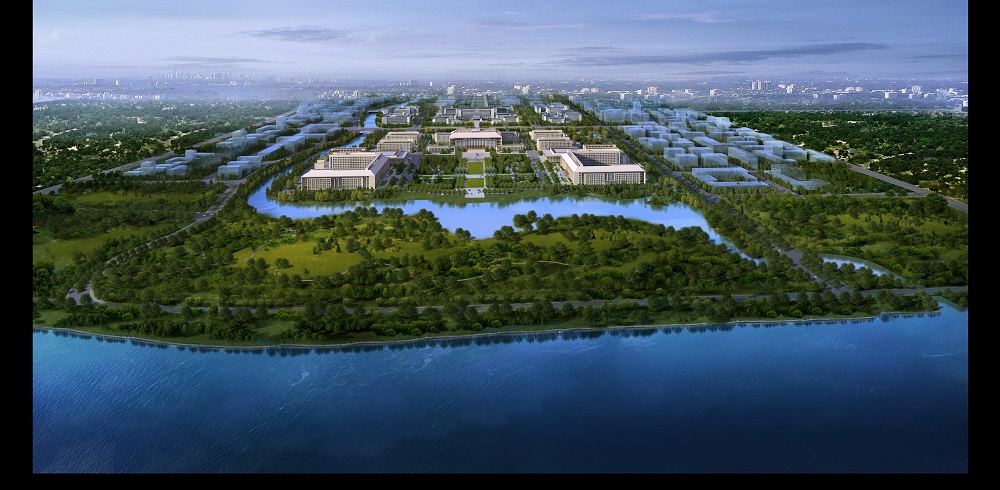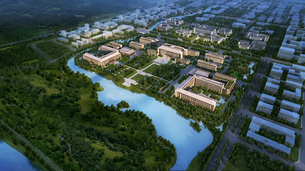 該項目位于北京城市副中心行政辦公區的核心區域,在長安街的東延長線上,運潮減河與北運河之間,將成為北京中心城區功能疏解的重要承接地。行政辦公區景觀結構為:一條生態軸貫穿南北,由豐字溝水系和建筑公共綠地組成環抱行政辦公核心區的生態圍合,整體形成全區山水結構與自然式的園林景觀。