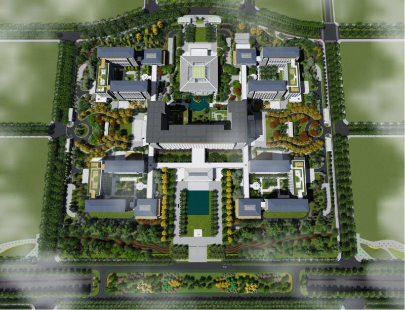 行政辦公是城市辦公的一大類型。政府機關的行政辦公區域的環境景觀正在趨于開放和半開放,并由獨享趨于共享,由單一功能逐漸轉為多元復合。行政辦公區空間景觀是城市公共環境的重要組成部分,是城市生產、生活與生態空間的有機結合,體現著城市的特色風貌與文化。通過景觀語言的創新表達,改善行政辦公建筑冷漠的外部形象,消除高層辦公建筑的巨大體量給人帶來的壓抑感,讓環境顯得更親切宜人、耳目一新。