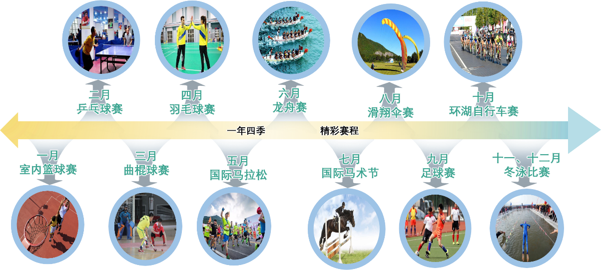 2.4.運動賽事:結合國家加快發展健身休閑產業的指導意見、體育運動名錄及小鎮建設,打造灰湯體育小鎮,布局如足球、馬術、自行車(東鶩山環道及環湖自行車道)、環湖田徑馬拉松、游泳、賽艇、龍舟賽、擊劍、射箭、射擊(室內)、太極、廣場舞、攀巖、競走等運動項目,結合各已開發項目布置全民休閑運動項目,打造湖南省賽事運動基地。