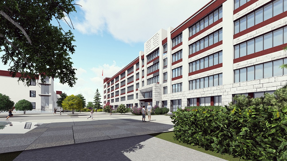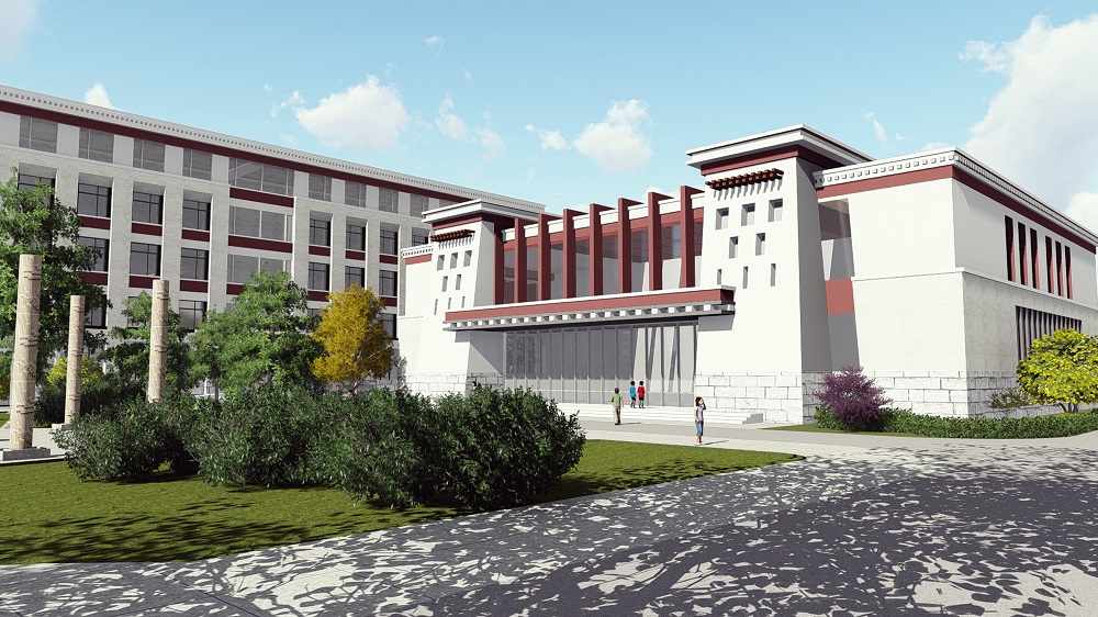 本項目位于日喀則經濟開發區內,辦學規模為36班的初級中學,包括教學樓、實驗樓、食堂、風雨操場、宿舍樓等建筑。規劃建設用地為56014.94㎡,總建筑面積34558.95㎡,其中地上建筑面積29505.67㎡,地下建筑面積5053.28㎡。本項目南、北、東、西側均為規劃道路,南側地塊為規劃薩嘎中學和崗巴中學。