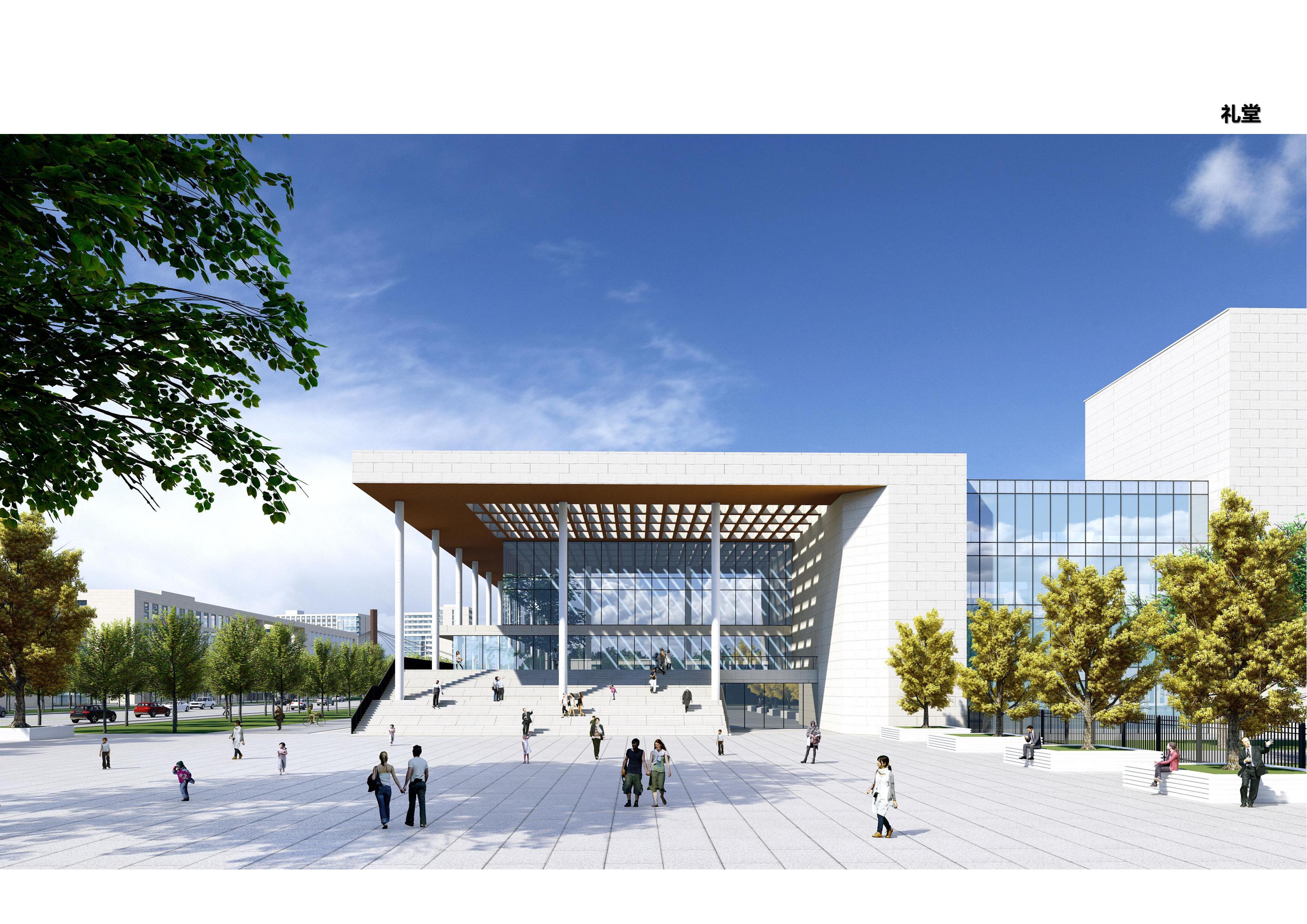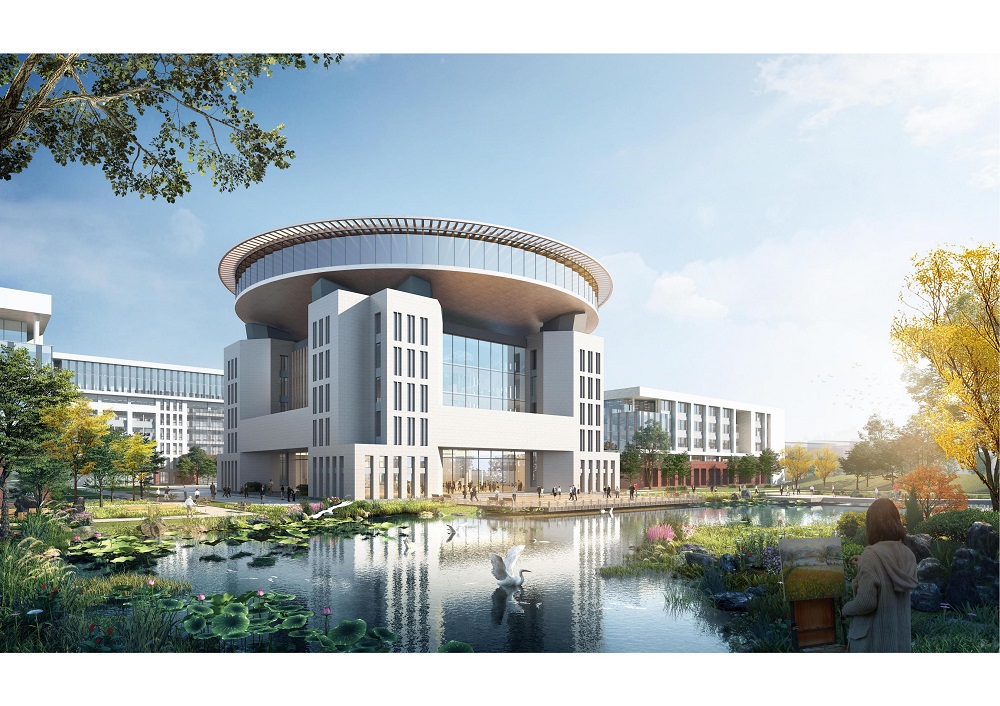項目核心文化建筑:圖書館與圖書綜合樓,采用左右對仗形式設置于東西校區中心位置。圖書綜合樓以“圓”為頂;圖書館以“方”為體,體現“天圓地方” 的中國傳統宇宙觀 。