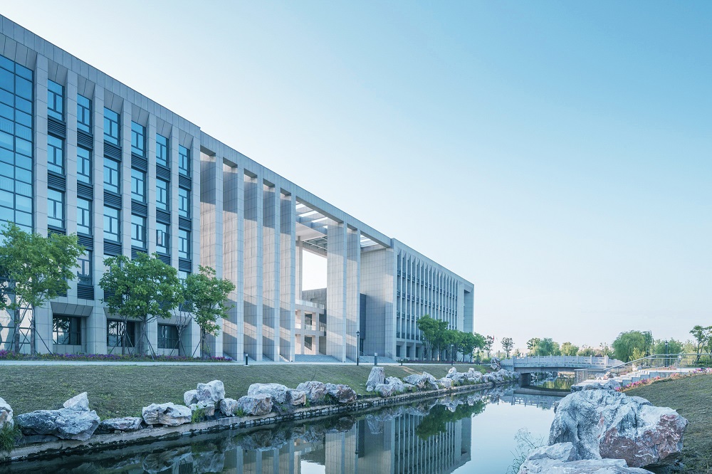 建筑設計秉承傳承與創新的核心理念。研究高等教育起源校園規劃手法與東西方校園開放空間策略,奠定校園核心區域教學區、實訓區基調。教學區嚴謹莊重,打造軸線分明的共享空間,視為傳承;實訓區流動拓展,打造平等、自由、交流、學習的氛圍,視為創新。結合江蘇泰州當地建筑顏色與現代校園色彩體系,體系校園的文化與嚴謹。