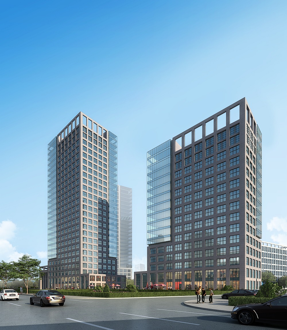 場地&建筑規劃整體構思清晰簡練, 需要與整個片區的形象保持一致性——穩重大方,同時需要豐富整個園區的形象。項目的外在形象重在展示現代孵化園(加速器)科研性、生產性的外在形象,力求以新材料組合的簡潔的現代主義風格喚起觀者對孵化園(加速器)的聯想,體現本項目的研發生產主題的前提下,本次設計在統一中尋求變化。廠房分為7層、8層、9層,多以矩形為主,垂直交通核心分布在四邊,簡潔高效,中間的大空間辦公可分可合,滿足各種生產空間需求。