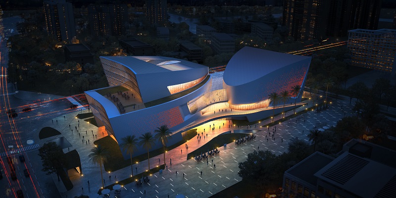 項目概述,海南省非物質文化遺產展示中心項目位于海南省海口市瓊山區,總建筑面積52180平方米,建筑方案以“海上帆、風中翼、云上錦”為總體設計理念。